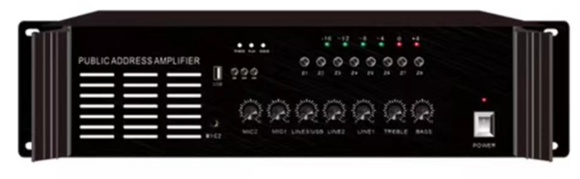 2,帶有前置放大器,具有2路話筒輸入,其中MIC2話筒帶默音強(qiáng)插功能。便于緊急廣播,高低音可調(diào)。